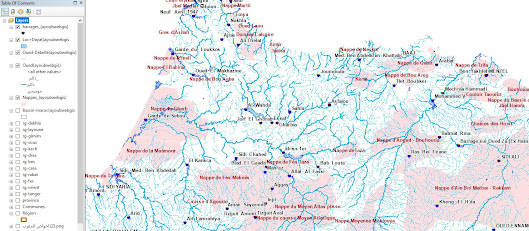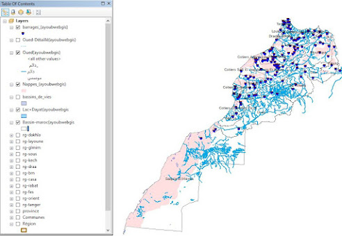 تحميل بيانات الهيدروغرافيا مثل المجاري المائية والسدود والبحيرات والضايات والفرشات الباطنية وحدود الأحواض