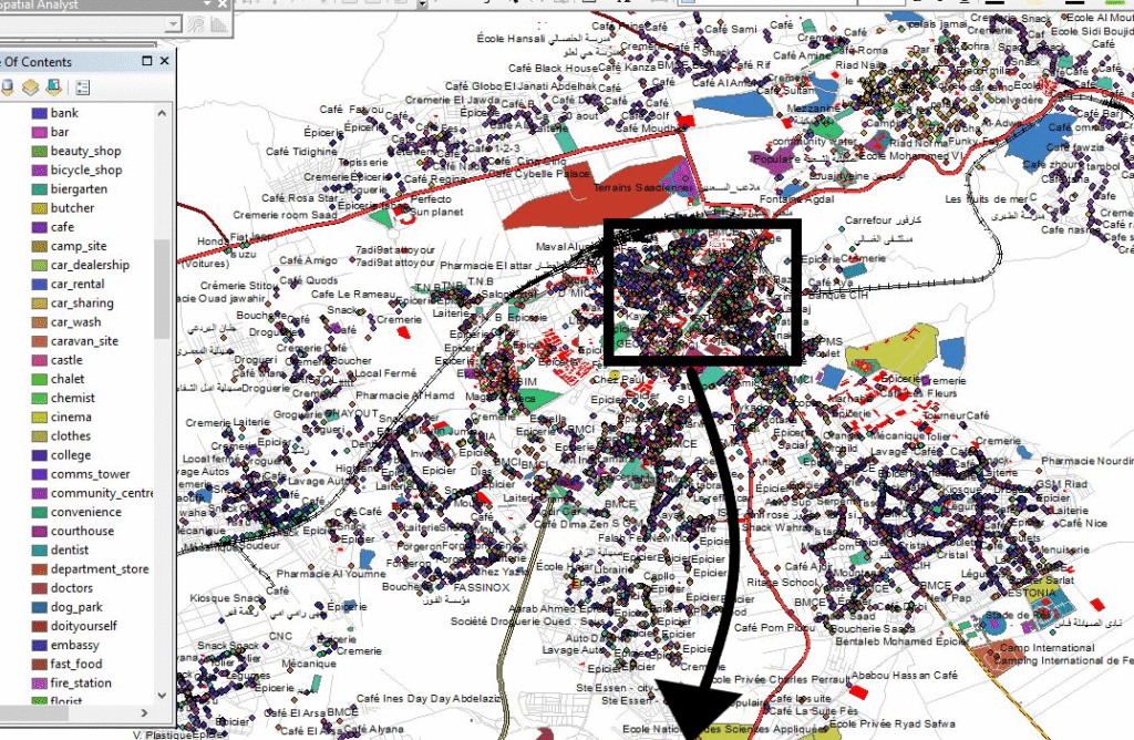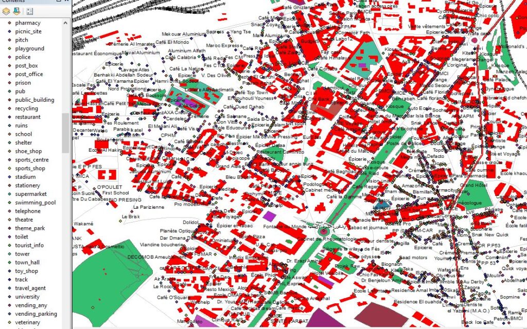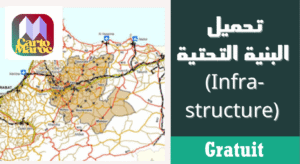 مكانية بصيغة shp تخص البنية التحتية من قبيل  الطرق والشوارع والسكة الحديدية والمدن والمطارات والميناء والخدمات والمرافق ، كما هو موضح في الأمثلة أسفله